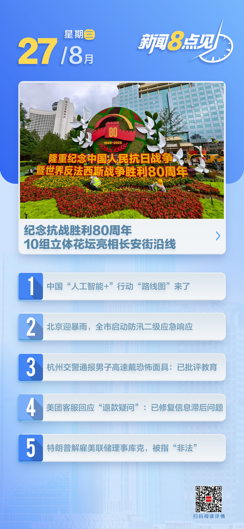 紀(jì)念抗戰(zhàn)勝利80周年主題花壇綻放長(zhǎng)安街,包含這些寓意
