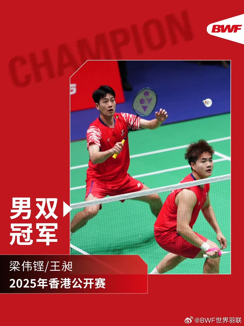 據(jù)人民日報消息,9月14日,世界羽聯(lián)世界巡回賽中國香港公開賽展開5個單項決賽爭奪。在剛剛結(jié)束的男雙決賽中,中國隊組合梁偉鏗/王昶以總比分2-1戰(zhàn)勝印度隊組合蘭基雷迪/謝提,奪得冠軍。