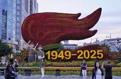 9月20日,新京報(bào)記者在長安街實(shí)地探訪時(shí)看到,沿線10組立體花壇已完成國慶元素轉(zhuǎn)換和植物調(diào)整,全新亮相。其中,東單東南角的 “黃河贊歌” 花壇格外吸睛 —— 這座頂高8.5米的花壇,以雄偉壯觀的壺口瀑布造型再現(xiàn) “黃河之水天上來” 的磅礴氣勢,搭配奔騰的駿馬、載歌載舞的人群等元素,既傳遞出激勵中華民族奮勇前進(jìn)、共創(chuàng)美好未來的精神力量,更因配有《我和我的祖國》背景音樂成為 “會唱歌” 的花壇,引得游人紛紛駐足,與旋律一同合唱,成為長安街畔一道兼具視覺與聽覺感染力的國慶風(fēng)景線。