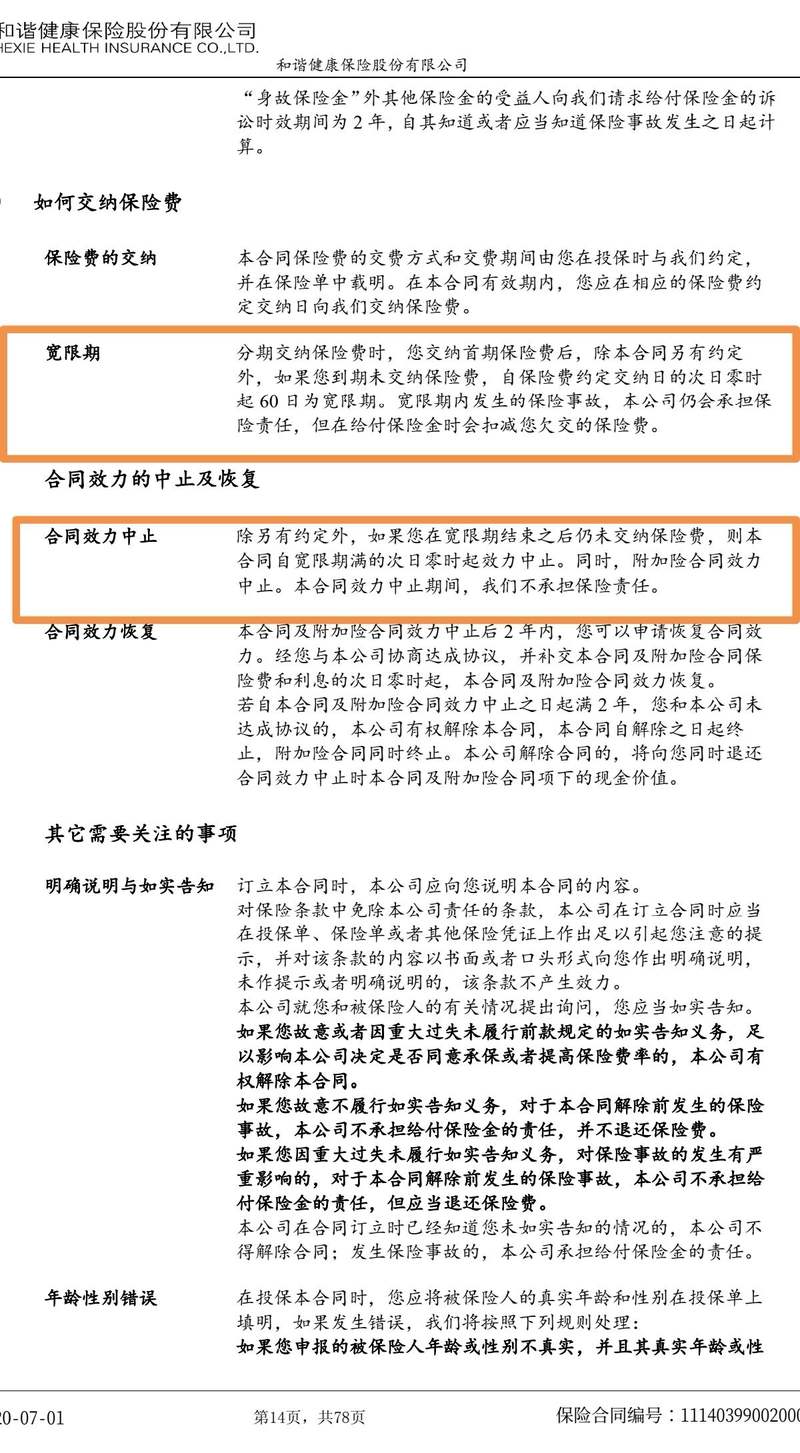 保險合同中寬限期及合同效力中止的解釋。受訪者供圖
