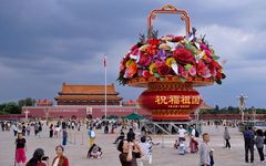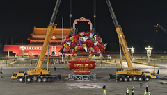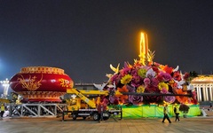 9月22日,天安門廣場“祝福祖國”巨型花籃經(jīng)過昨夜至今日凌晨的吊裝施工,目前主體已完工,待底部花卉擺放完成后,將于25日正式亮相。