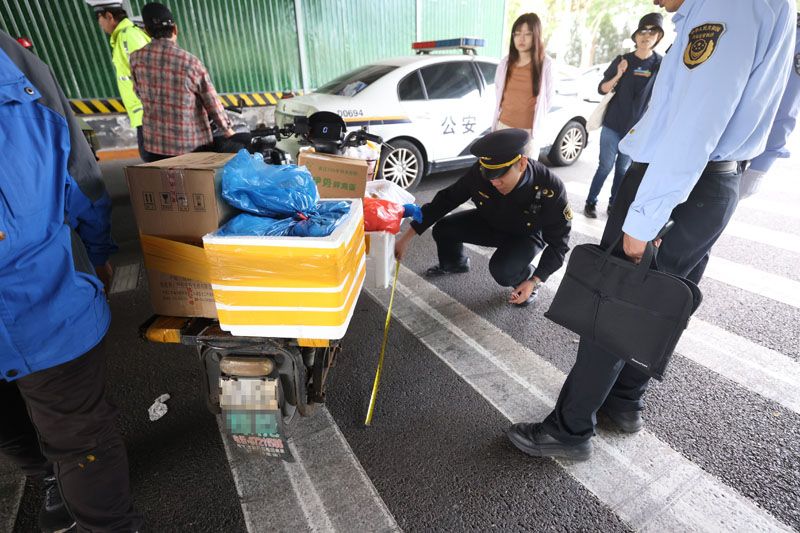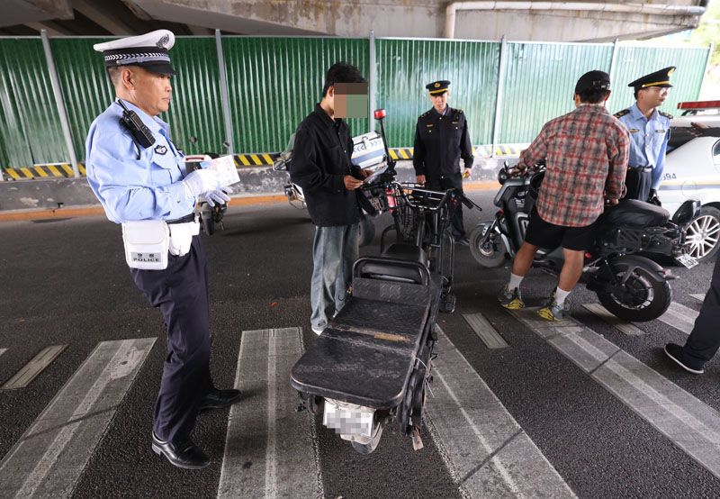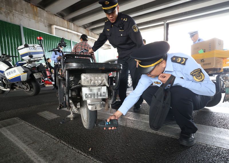 9月22日,北京大望橋下,朝陽交通支隊與朝陽區(qū)市場監(jiān)管局聯(lián)合開展針對電動自行車違法拼改裝的執(zhí)法檢查。圖為朝陽區(qū)市場監(jiān)管局工作人員發(fā)現(xiàn)該電動車存在違規(guī)解除限速的情況。