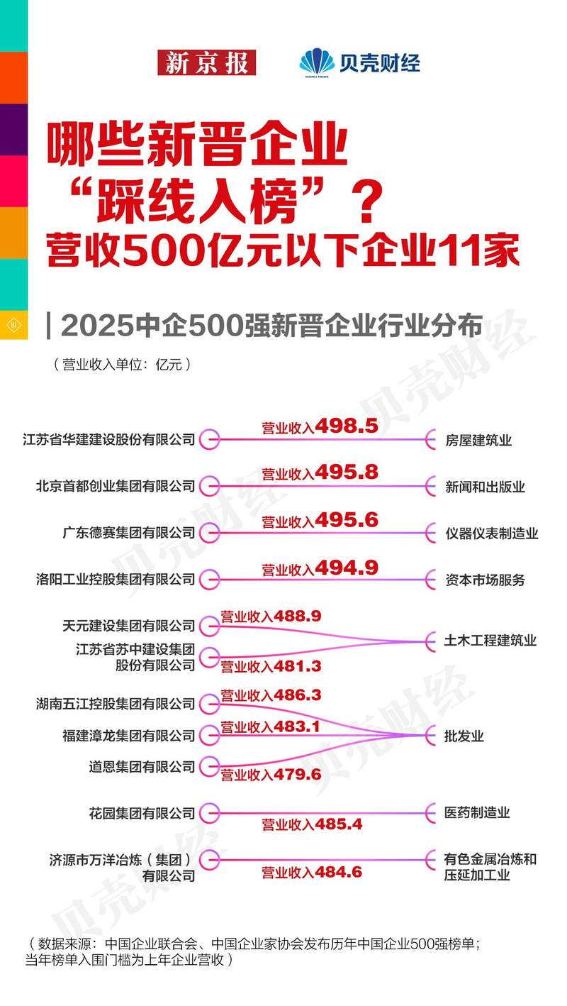 從行業(yè)結(jié)構(gòu)看,“踩線”企業(yè)覆蓋多個(gè)領(lǐng)域:既包括房屋建筑、土木工程和批發(fā)業(yè)等傳統(tǒng)行業(yè),也涉及醫(yī)藥制造、有色金屬冶煉、儀器儀表制造、新聞出版和資本市場(chǎng)服務(wù)等細(xì)分領(lǐng)域。這表明,盡管傳統(tǒng)行業(yè)仍占據(jù)相當(dāng)比重,新興市場(chǎng)或經(jīng)過改造升級(jí)的傳統(tǒng)企業(yè),同樣具備沖擊榜單門檻的能力。