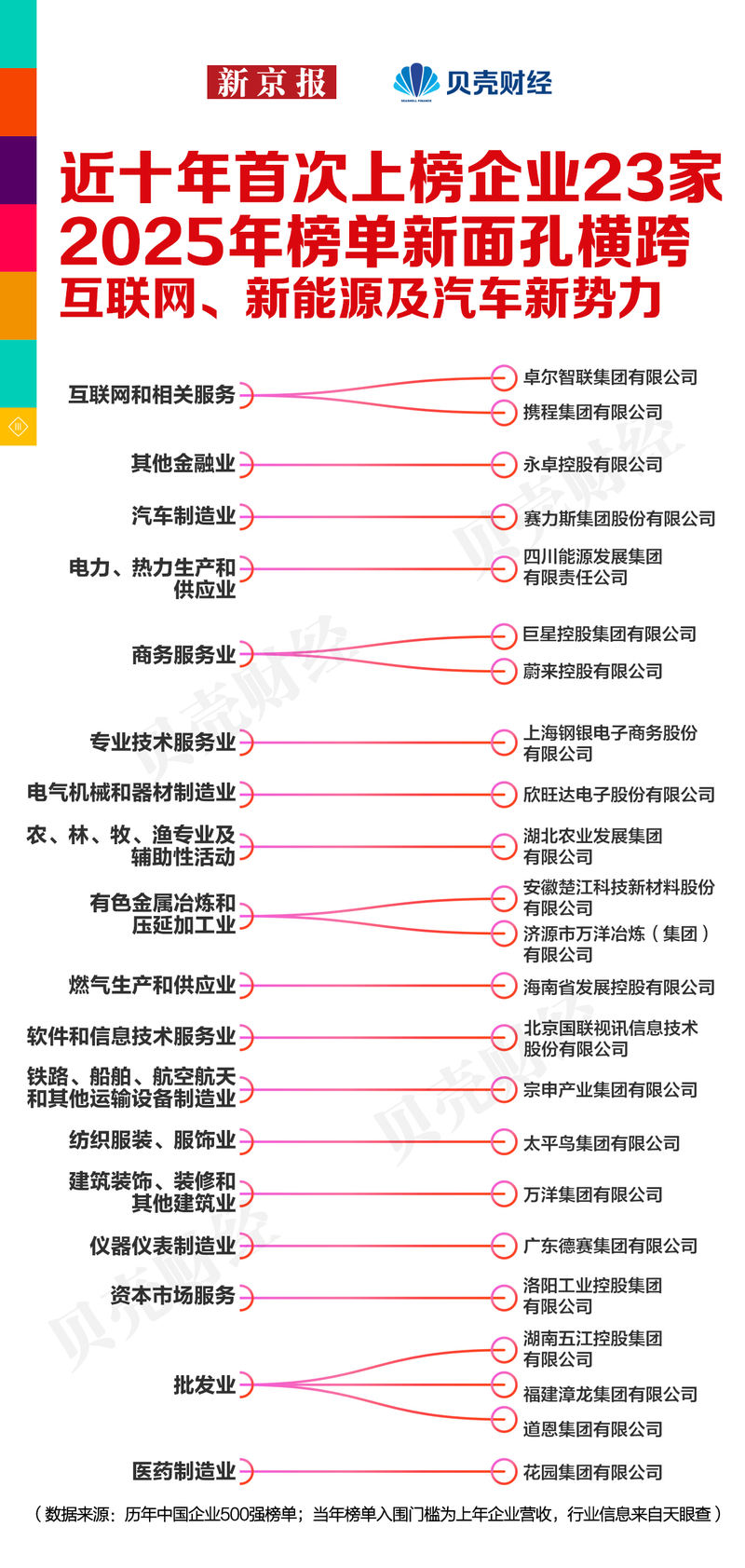 新京報貝殼財經(jīng)記者梳理歷年榜單數(shù)據(jù),2025年榜單中,有23家企業(yè)在近十年新入榜單。