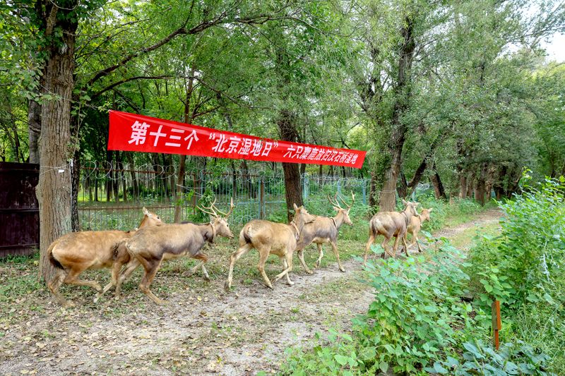 9月23日,北京市園林綠化局在順義漢石橋濕地自然保護區(qū)舉辦了第十三個“北京濕地日”主題宣傳活動,6只麋鹿被放歸濕地。