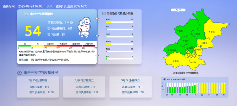 據(jù)北京市生態(tài)環(huán)境監(jiān)測中心今早7時(shí)數(shù)據(jù),目前實(shí)時(shí)空氣質(zhì)量指數(shù)54,空氣質(zhì)量良。