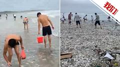 9月23日,福建漳州一市民記錄受“樺加沙”臺風(fēng)影響海灘遍地生蠔。拍攝者沈女士表示,受臺風(fēng)影響當(dāng)?shù)毓未箫L(fēng),海浪把生蠔涌到岸上,退潮后留在沙灘上,有幾百人在沙灘上撿拾,自己撿了有幾十斤,多的能撿幾百上千斤,都是活的,平時撿不到,只有很急的浪才能打上來。