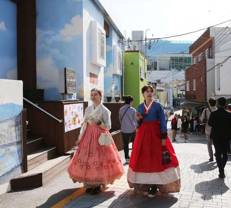 2023年11月9日,游客在韓國釜山市的甘川文化村游玩。新華社記者姚琪琳攝