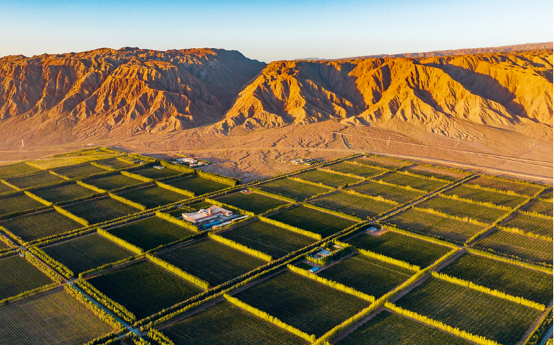 在物產(chǎn)領(lǐng)域,新疆是低調(diào)的“超級糧倉”。通過數(shù)十年的人工綠洲建設(shè),新疆建成了10萬平方千米人工綠洲,人工綠洲總面積比新中國成立之初的面積擴大了6 倍,這些綠洲一年可以生產(chǎn)2330萬噸糧食和1400萬噸林果。