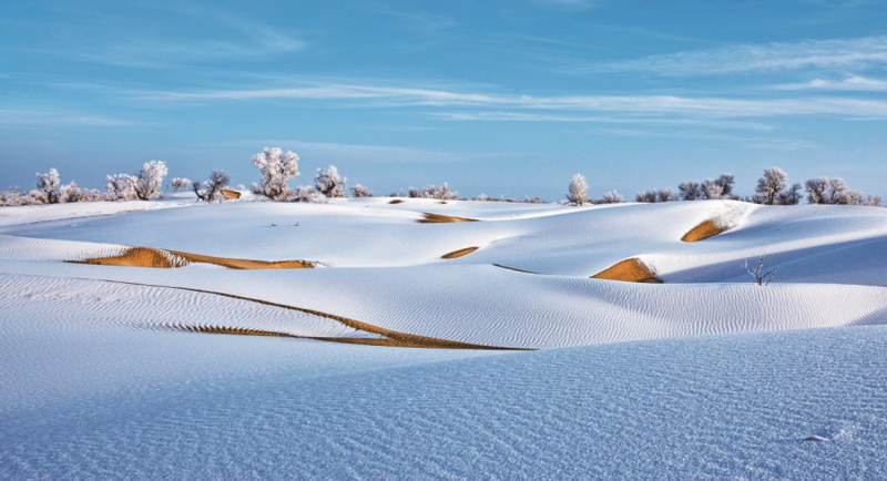 塔克拉瑪干沙漠雪景。鄧建中/攝