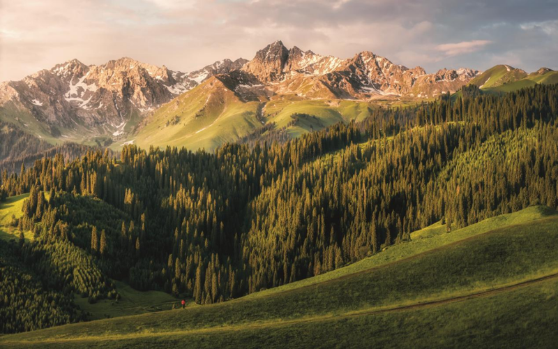 伊犁河谷的雪嶺云杉林。龍世杰/攝