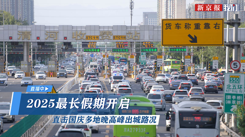 2025最長假期即將開啟,各地已經(jīng)陸續(xù)迎來出城高峰。北京、南京和深圳等地的高速、高鐵及城區(qū)實時路況怎么樣?放假前哪里最擁堵、怎么走最順暢?新京報直擊節(jié)前多地路況。