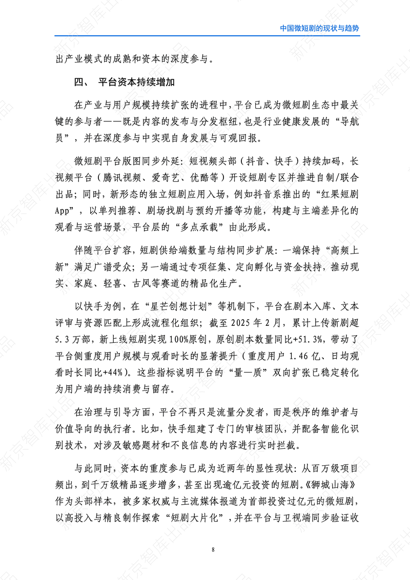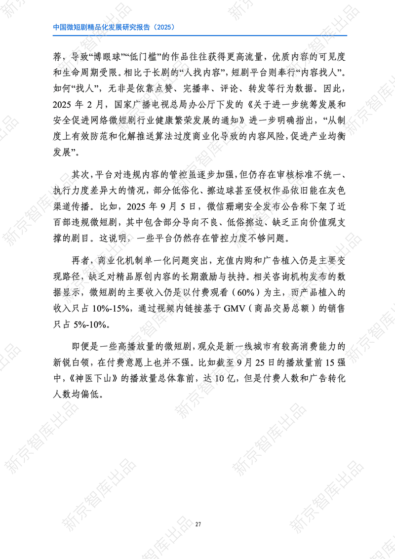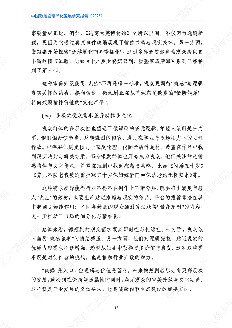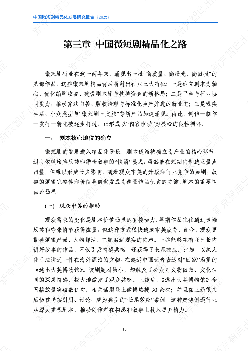 為了呈現(xiàn)當前微短劇的精品化發(fā)展趨勢,同時促使其可持續(xù)地健康發(fā)展,新京智庫發(fā)布《中國微短劇精品化發(fā)展研究報告(2025)》。報告的主要結(jié)論如下。
