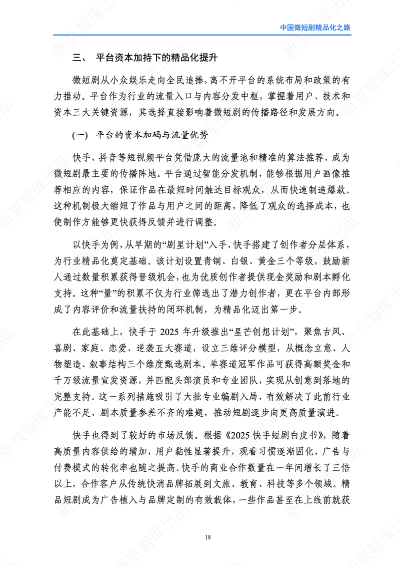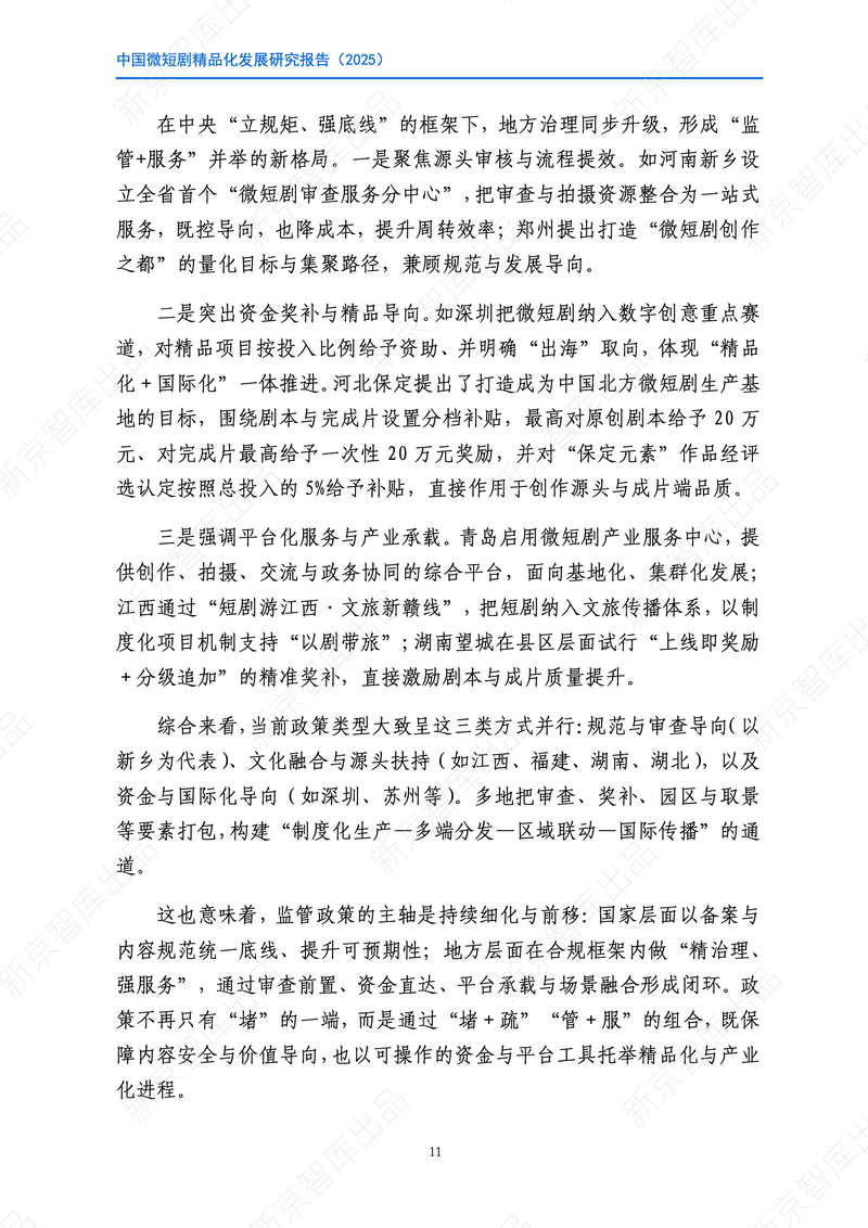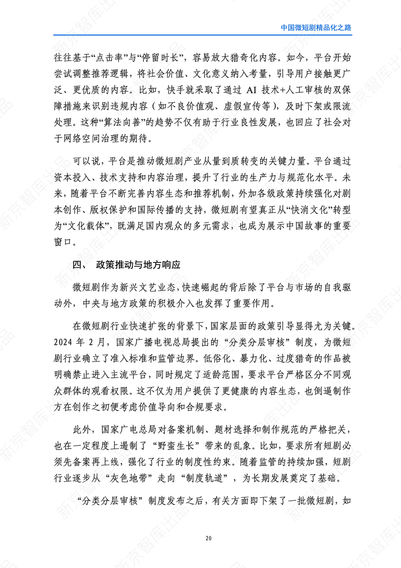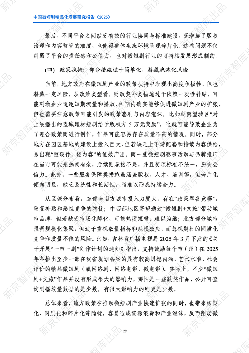 第三,政策與平臺的協(xié)同作用至關重要。中央確立“分類分層審核”等制度,地方則通過獎補和產(chǎn)業(yè)園區(qū)推動微短劇納入文化戰(zhàn)略,共同構(gòu)建了“制度護欄+發(fā)展支持”的新格局。