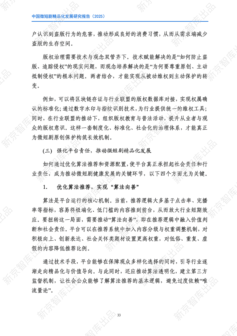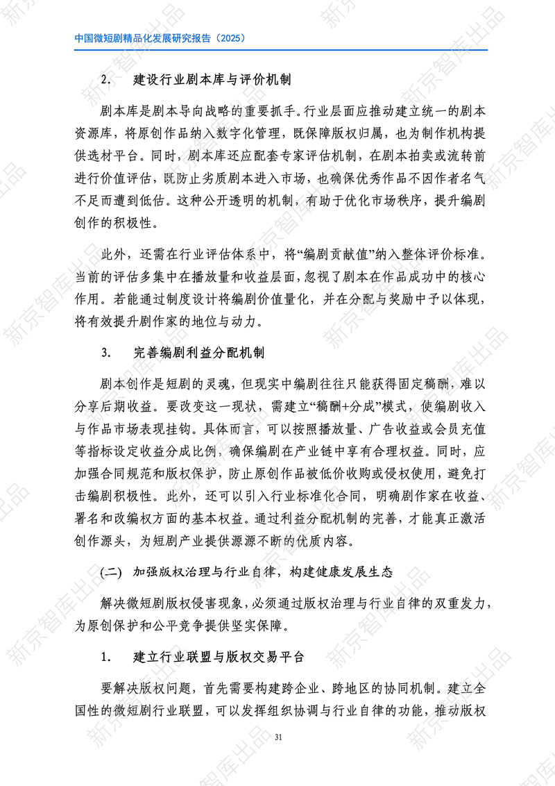 第四,未來微短劇的可持續(xù)發(fā)展路徑在于:強化劇本創(chuàng)作與編劇激勵,完善版權(quán)與分賬機制,推動“微短劇+”等跨界融合,不斷推進微短劇的精品化輸出。