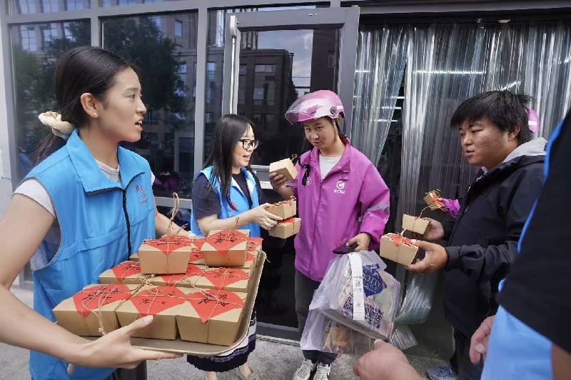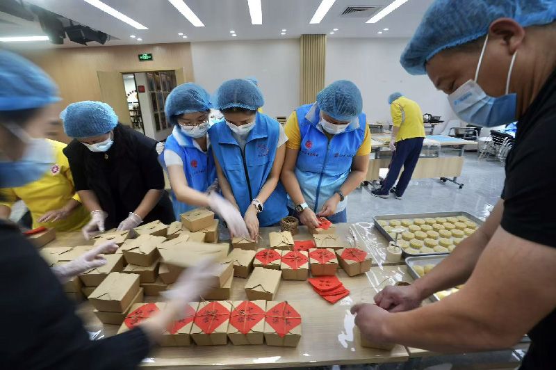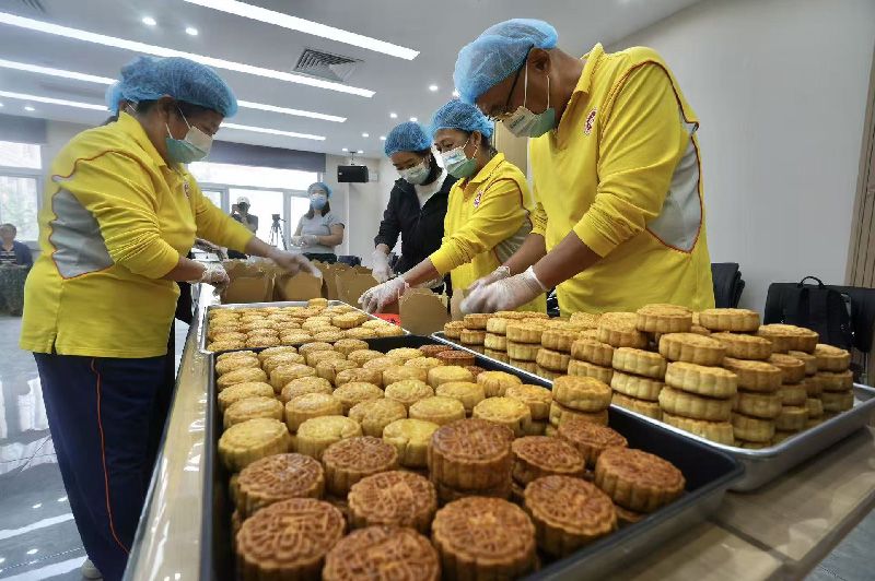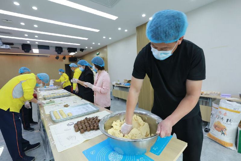 9月29日,朝陽區(qū)安貞街道總工會聯(lián)合史超齊勞模工作室開展以“月滿中秋,手作團圓”為主題的傳統(tǒng)月餅制作體驗活動,邀請志愿者、社區(qū)居民和轄區(qū)內(nèi)送餐員、快遞員、戶外工作者等新業(yè)態(tài)群體代表共同制作月餅,共度佳節(jié)。圖為社區(qū)志愿者們和面、調(diào)餡制作月餅。
