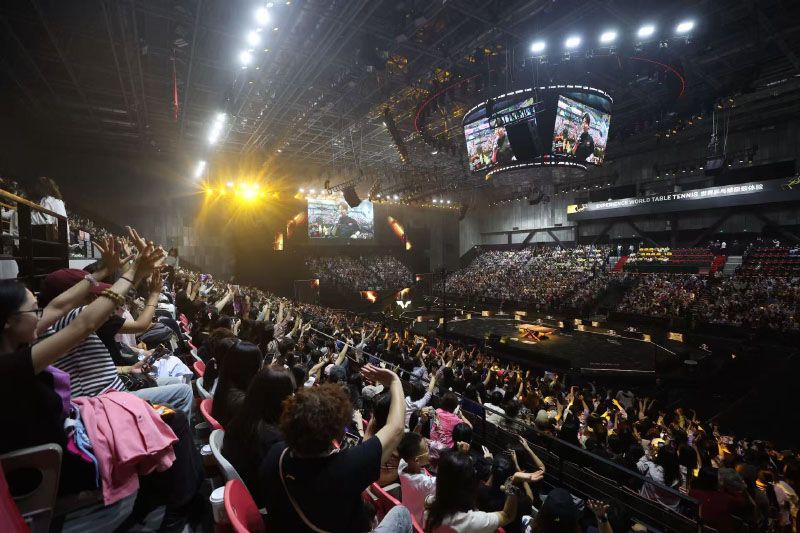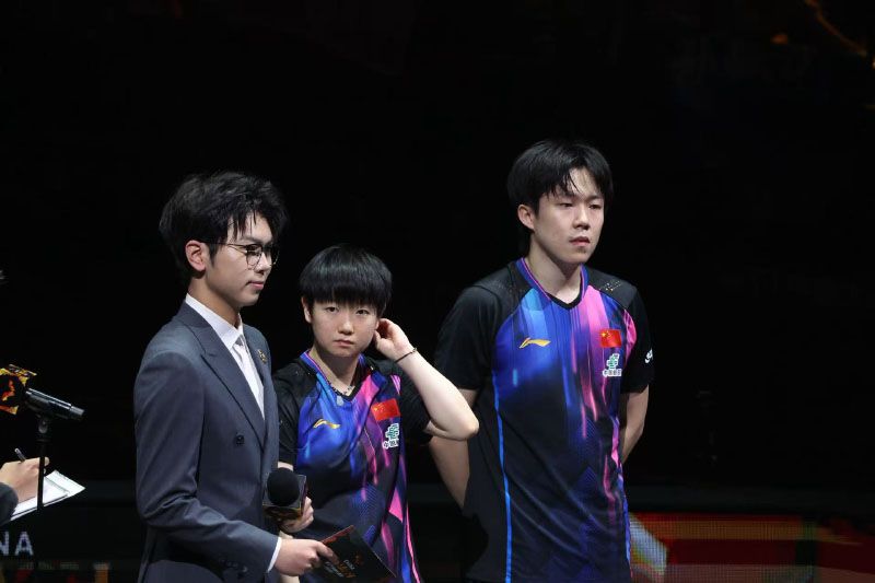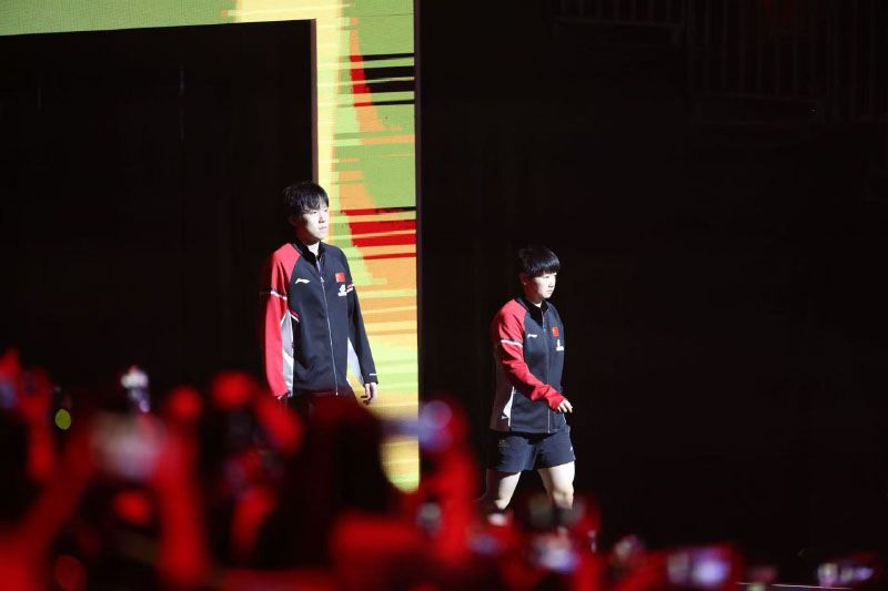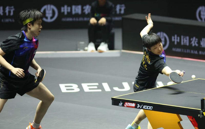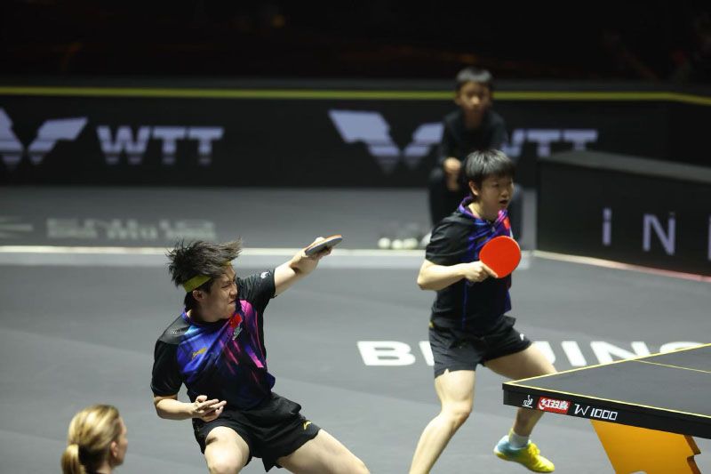 9月30日晚,WTT中國(guó)大滿(mǎn)貫2025混雙比賽在石景山首鋼園展開(kāi)激烈角逐。國(guó)乒混雙黃金組合“莎頭”王楚欽/孫穎莎迎來(lái)他們的首場(chǎng)混雙對(duì)決,在比賽中孫穎莎 /王楚欽3比1戰(zhàn)勝薩琳/戈?duì)柵恋?,順利晉級(jí)8強(qiáng)。圖為“莎頭”組合出場(chǎng)。