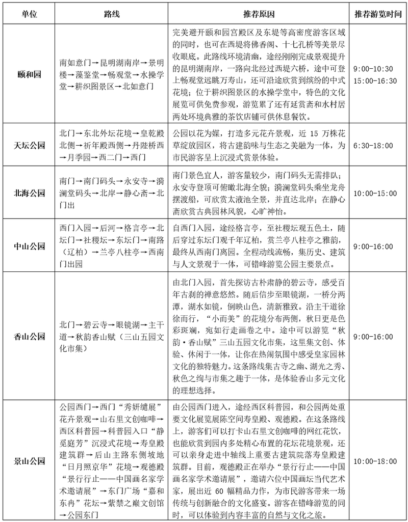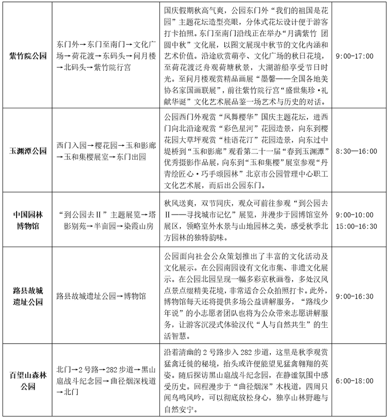 ■ 附:2025年國(guó)慶中秋假期市屬公園錯(cuò)峰游覽路線