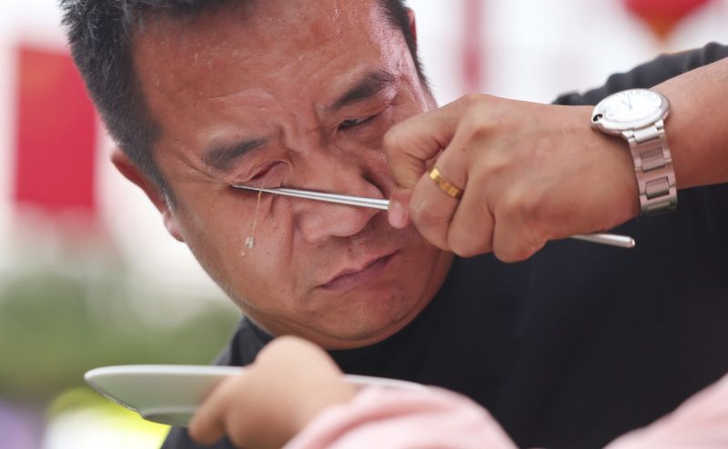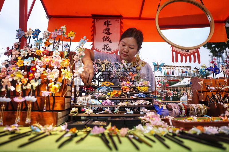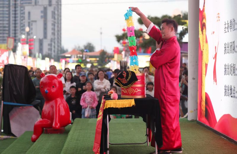 10月3日,通州月亮河小鎮(zhèn)邀請京津冀非遺傳承人齊聚大運(yùn)河畔,多位國家級非遺傳承人領(lǐng)銜50多席的非遺攤位,為市民朋友呈現(xiàn)一場可觀可觸的國風(fēng)盛宴。圖為演員表演非遺噴火。