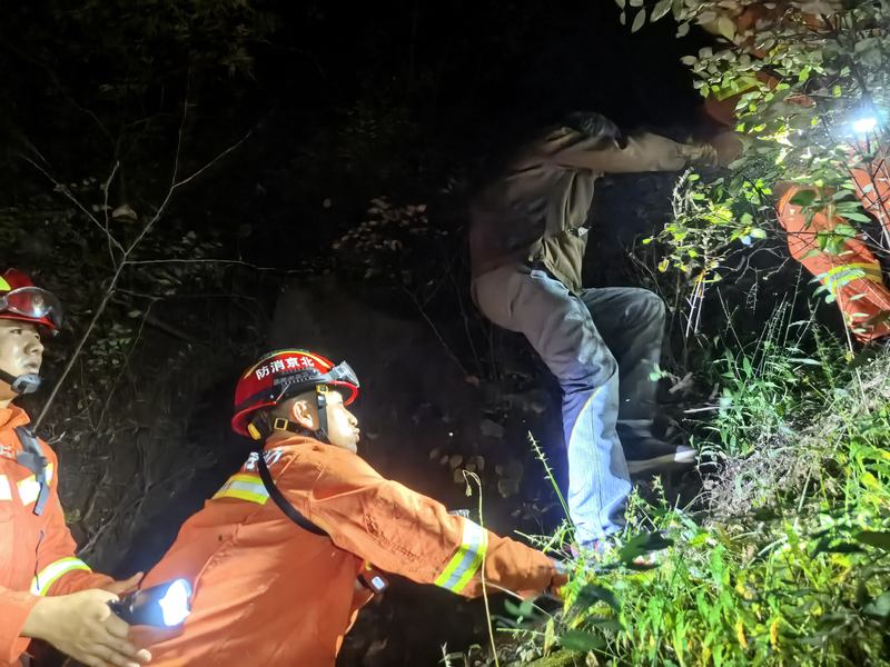 10月3日清晨7點(diǎn),天剛蒙蒙亮,第一救援組的隊(duì)員們?cè)俅渭Y(jié)前往現(xiàn)場(chǎng),途中遇到了迷失的老人。這四名老人最小的69歲,最大的74歲,原本沿著景區(qū)步道攀爬長(zhǎng)城的他們,見(jiàn)到旁邊的野山也很漂亮,便臨時(shí)起意踏出了景區(qū)護(hù)欄,想“近距離看看秋景”??蓻](méi)走多久,山路就變得崎嶇難辨,等天色徹底暗下來(lái),他們連來(lái)時(shí)的方向都找不到了。萬(wàn)幸的是,老人們身體沒(méi)有受傷情況。最終救援人員安全地將四位老人護(hù)送至山下。