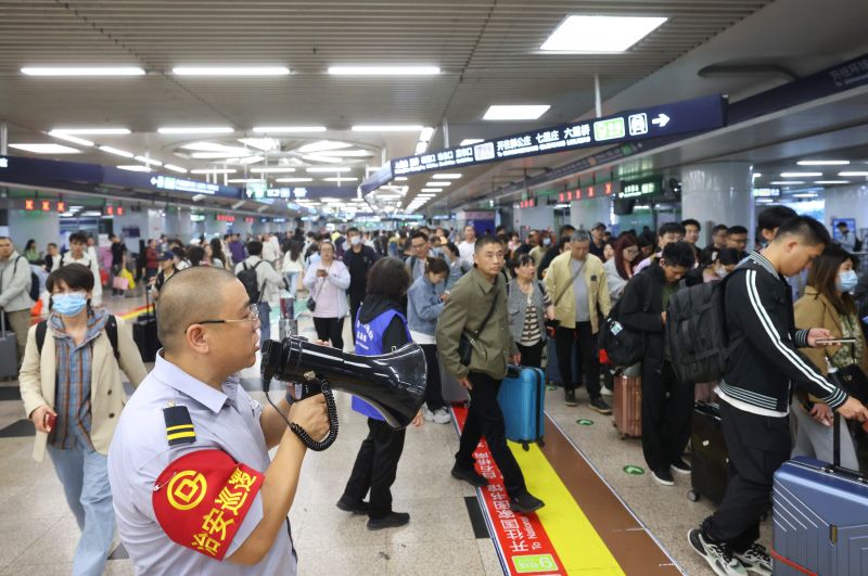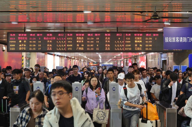 10月7日晚,北京西站,旅客出站。10月7日至8日,北京迎來假期返京客流高峰,為保障夜間抵京的旅客順暢出行,北京8條連接火車站、機(jī)場的地鐵線路采取組網(wǎng)延時(shí)運(yùn)營的措施;出租車、網(wǎng)約車動態(tài)循環(huán)保障火車站地區(qū)運(yùn)力;北京公交集團(tuán)對途經(jīng)7大火車站的13條夜班線路進(jìn)行實(shí)時(shí)客流監(jiān)控,適時(shí)調(diào)整發(fā)車時(shí)間。
