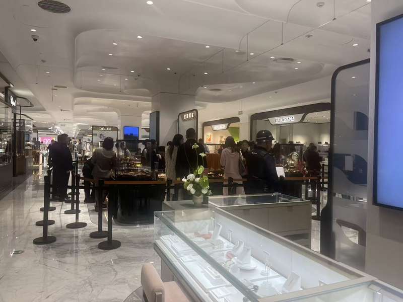 10月23日國際金價雖出現(xiàn)下跌,但未影響消費者在漲價前的搶購熱情。當(dāng)日,記者在北京SKP探訪發(fā)現(xiàn),現(xiàn)場排隊顧客有四五十人,工作人員稱排隊時間至少50分鐘,部分素金款已售罄。國貿(mào)門店同樣出現(xiàn)排隊現(xiàn)象,盡管無折扣活動,等待時間也超過半小時。一位現(xiàn)場排隊的消費者徐女士告訴記者,因線上斷貨,她特地乘高鐵來排隊購買。業(yè)內(nèi)人士稱,返券活動疊加漲價預(yù)期,使得老鋪黃金線下銷售出現(xiàn)集中放量。