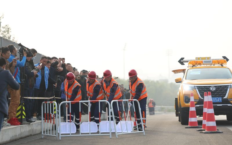演練共設(shè)5個(gè)科目,模擬不同場(chǎng)景下作業(yè)方式,分別是長(zhǎng)安街除雪作業(yè)、主路架空橋區(qū)除雪作業(yè)、環(huán)路主路除雪作業(yè)、輔路除雪作業(yè)、限高限寬道路除雪作業(yè)。