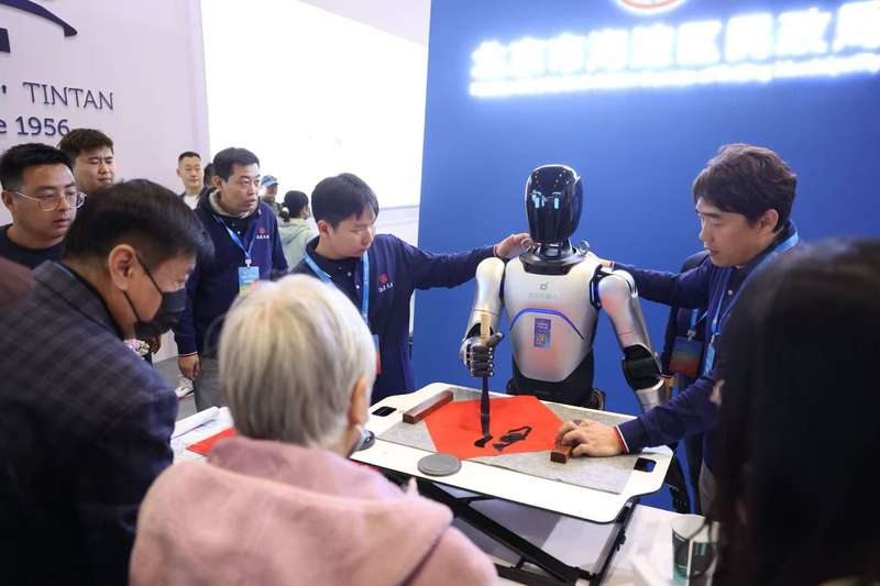 機器人正在展示寫福字。新京報記者 王飛 攝