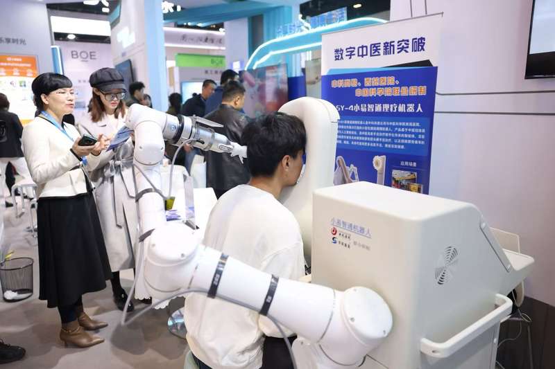機器人正在進行中醫(yī)推拿。新京報記者 王飛 攝