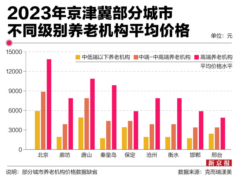 2023年京津冀部分城市不同級(jí)別養(yǎng)老機(jī)構(gòu)平均價(jià)格。