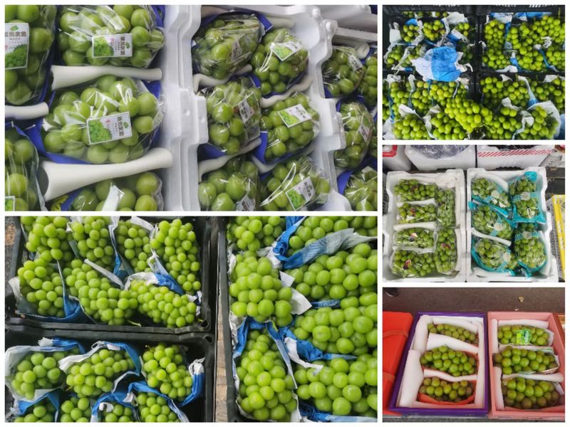 9月底,新發(fā)地農(nóng)產(chǎn)品批發(fā)市場部分批發(fā)商攤位擺放的陽光玫瑰,批發(fā)價單價在3元/斤-7元/斤。