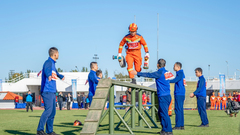 近日,龍?zhí)逗谰仍緝?nèi),60余名幼兒園小朋友化身“小小消防員”,分組探秘消防站的“三大寶藏地”。車庫(kù)里,孩子們圍在水罐消防車旁,聽消防員講解“15噸大水肚子”的儲(chǔ)水能力,以及高壓水泵如何將水變成“滅火水龍”。器材室的“魔法裝備”無(wú)齒鋸、熱敏探測(cè)儀等設(shè)備引發(fā)好奇,消防員演示救生繩打結(jié)技巧,孩子們跟著念叨“蝴蝶結(jié)、保安全”。