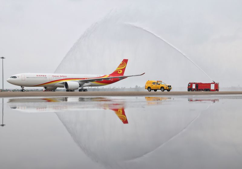 11月1日,??诿捞m國際機(jī)場,新引進(jìn)的空客 A330-900 客機(jī)順利降落并通過水門。據(jù)了解,商務(wù)部部長王文濤10月21日會(huì)見空客公司首席執(zhí)行官傅里,就空客對華合作等進(jìn)行交流。王文濤表示,近年來中國市場規(guī)模穩(wěn)步擴(kuò)大,已成為全球第二大消費(fèi)市場和進(jìn)口市場。中國將持續(xù)推進(jìn)中國式現(xiàn)代化建設(shè),發(fā)展新質(zhì)生產(chǎn)力,這將為包括空客在內(nèi)的外資企業(yè)提供廣闊的發(fā)展空間。