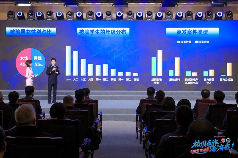 活動(dòng)現(xiàn)場(chǎng),既有高校被騙學(xué)生群體談?wù)鎸?shí)感受,又有反詐民警現(xiàn)場(chǎng)解讀數(shù)據(jù);既有舞臺(tái)情景劇生動(dòng)演繹高校學(xué)生被騙心路歷程,又有中科院心理學(xué)專(zhuān)家多角度解析高校學(xué)生被騙癥結(jié)問(wèn)題。此外,海淀公安還重磅發(fā)布《警學(xué)聯(lián)盟反詐工作措施》,同步為“高校四級(jí)反詐中心”揭牌,為“高校反詐志愿宣防隊(duì)”授旗,與轄區(qū)高校共同開(kāi)啟校園反詐“?!庇形业闹黝}活動(dòng)。