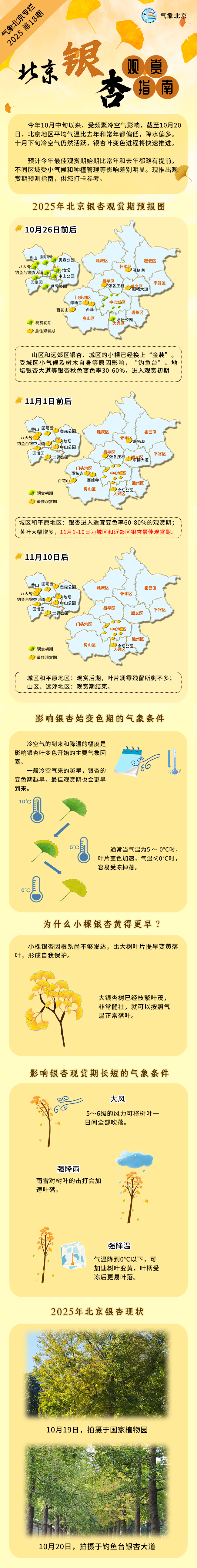 據(jù)氣象北京微信公眾號消息,進入十一月,北京浸潤在陽光與銀杏交織的鎏金畫卷里。目前,全市銀杏葉進入最佳觀賞期。金葉層疊的道路景致、裝點秋韻的紅墻古建、千年樹齡的歷史故事,是這個秋天不可錯過的風景。