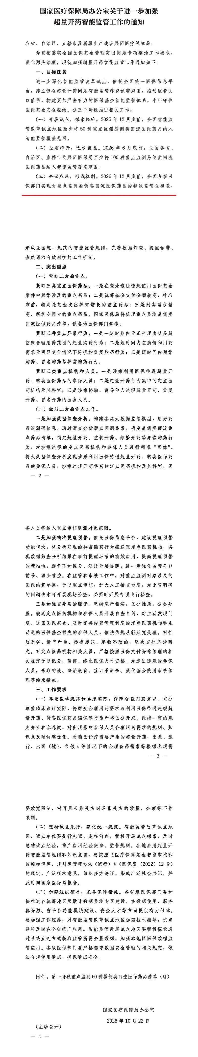 新京報(bào)訊 國(guó)家醫(yī)療保障局辦公室發(fā)布關(guān)于進(jìn)一步加強(qiáng)超量開藥智能監(jiān)管工作的通知,內(nèi)容如下: