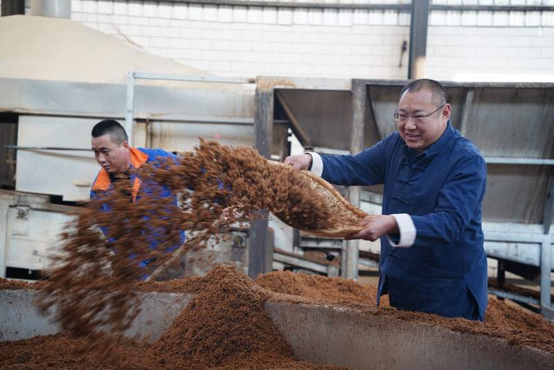 “90后”岳志偉是宗酒第四代傳承人,2016年從父輩手中接棒。只要在公司,他堅持每天巡查生產(chǎn)線,捻起一把酒醅細聞其香。“微生物活性很好,出來的酒肯定醇厚?!痹乐緜フf,冬月也正是出好酒的時節(jié)。