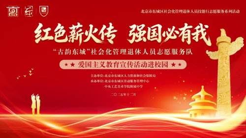 冬日暖陽(yáng)映初心,紅色薪火永相傳。2025年12月22日下午,中央工藝美術(shù)學(xué)院附屬中學(xué)內(nèi)紅旗飄揚(yáng)、歌聲嘹亮,“紅色薪火傳?強(qiáng)國(guó)必有我”愛(ài)國(guó)主義教育宣傳進(jìn)校園活動(dòng)在此圓滿(mǎn)舉行。本次活動(dòng)由北京市東城區(qū)人力資源和社會(huì)保障局主辦,北京市東城區(qū)勞動(dòng)服務(wù)管理中心承辦,邀請(qǐng)了退休革命老同志、文藝工作者與學(xué)校線上線下1000余名師生代表齊聚一堂,通過(guò)紅色宣講、經(jīng)典演繹、代際互動(dòng)等形式,奏響了愛(ài)國(guó)主義教育的青春樂(lè)章。