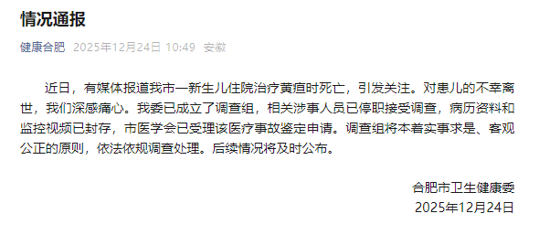 新京報訊 12月24日,合肥市衛(wèi)健委發(fā)布情況通報,詳情如下: