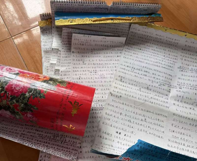 她從最簡(jiǎn)單的借條、收據(jù)開(kāi)始回憶,再寫(xiě)到鄰里往來(lái)、日常瑣事,最后觸及記憶深處的童年。在她的筆下,“割麥子要趕在露水干前”“推獨(dú)輪車(chē)最怕遇上下雨天”。遇到不會(huì)寫(xiě)的字,就用方言諧音或拼音代替。起初用筆記本,后來(lái)嫌紙?zhí)?,換行麻煩,索性攤開(kāi)舊掛歷,在光潔的背面寫(xiě)。