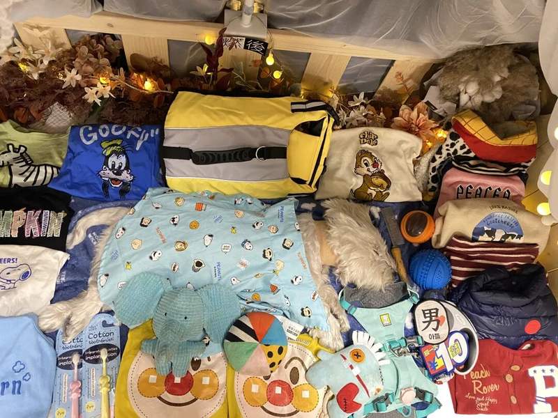 Papi葬禮上,Penny把它生前用過的物品鋪在它周圍。 受訪者供圖
