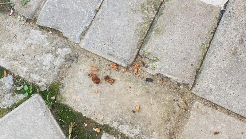 案發(fā)小區(qū)內(nèi)疑似被投放氟乙酸的雞骨頭。受訪者供圖
