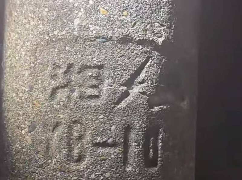 劉鵬提供的視頻顯示,這根水泥桿里的鋼絲斷了七八根,其中只有兩根看起來(lái)較新,“其他都銹了”,桿上刻著“湘??益YB-10-6”。