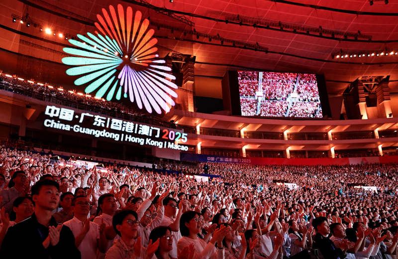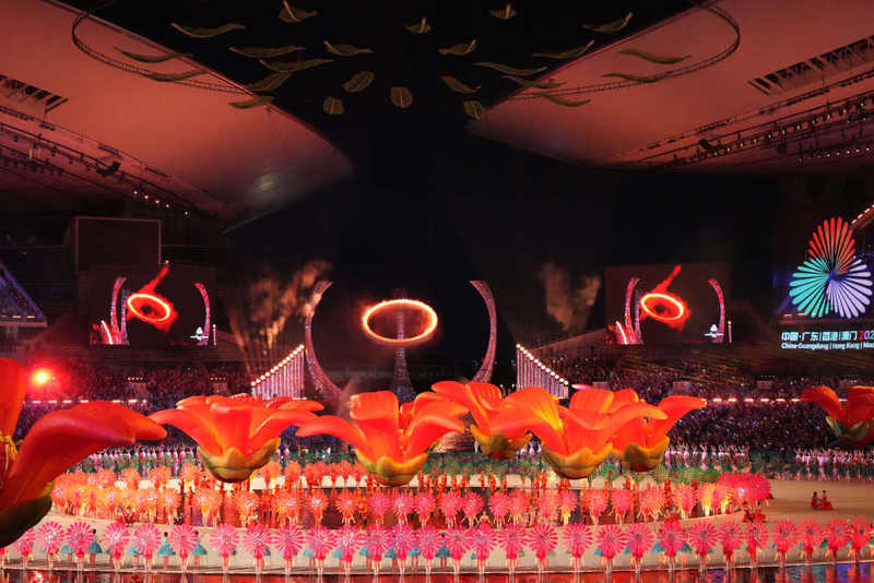 廣東省體育代表團、香港特別行政區(qū)體育代表團和澳門特別行政區(qū)體育代表團在入場儀式上共同入場。新華社記者 江漢 攝