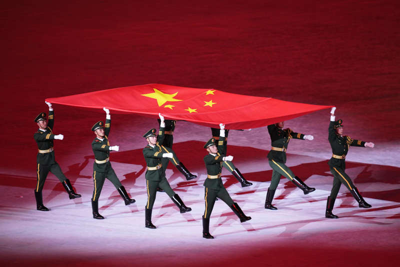 旗手護送中華人民共和國國旗入場。新華社記者 杜宇 攝