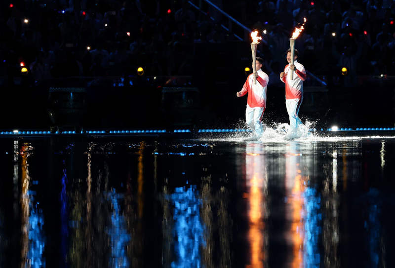 主火炬點燃后。新華社記者 胡虎虎 攝