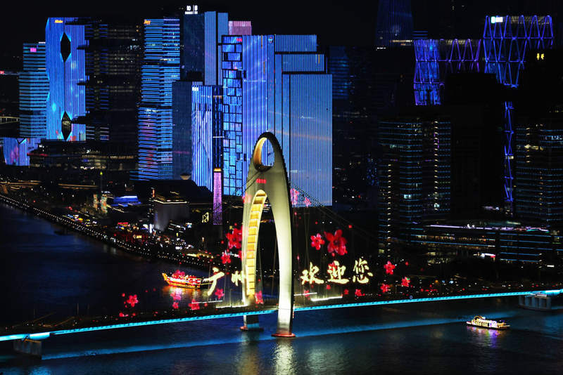 廣州獵德大橋夜景。新華社記者 王楷焱 攝