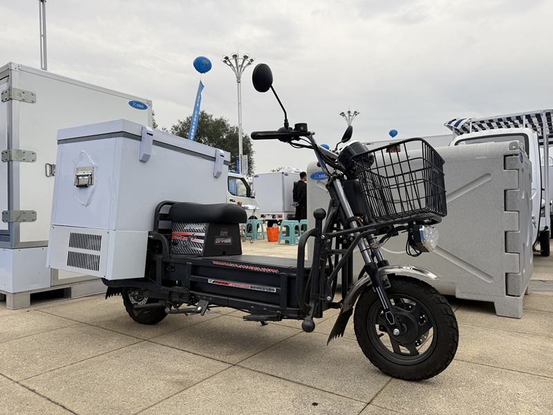 很多人對(duì)這次河南民權(quán)制冷裝備博覽會(huì)上的幾款電動(dòng)冷藏車感興趣,它們擺放在會(huì)展中心大門的一側(cè)。來自浙江的一個(gè)商戶說,“很多人都沒見過這種類型的冷藏車。兩輪電動(dòng)車的后座可以安置小冰箱,三輪電動(dòng)車的后座可以裝配大冰柜,既易于出行,又方便裝卸?!?/p>