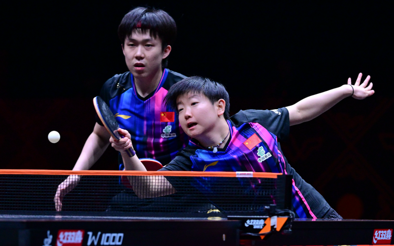 ▲12月12日,中國(guó)組合王楚欽/孫穎莎(右)正在比賽。圖/新華社