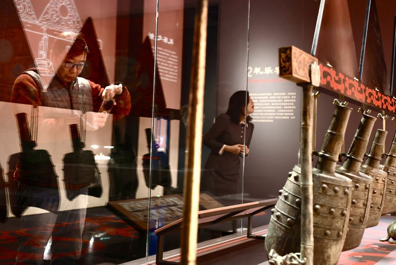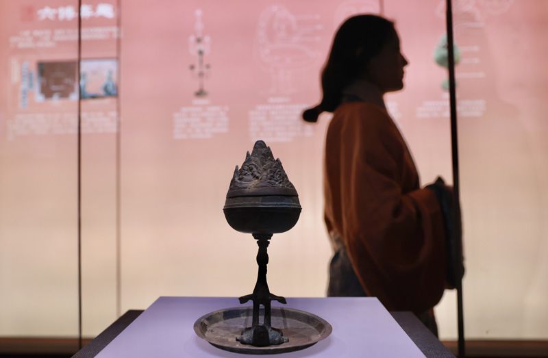12月15日,“?;韬睿荷須v王帝民侯,墓藏大漢風(fēng)云”臨展在路縣故城遺址博物館開幕,展期至2026年3月15日。展覽攜108件/套?;韬钅刮奈锪料啵?0余件首次進京的修復(fù)文物,以“南侯國—北郡縣”跨域?qū)φ找暯牵ㄟ^金器、玉器、青銅器等展品,解讀漢代郡國并行制度,還原大漢風(fēng)貌。圖為首次來京展出的“李姬家”銘文青銅豆形燈。